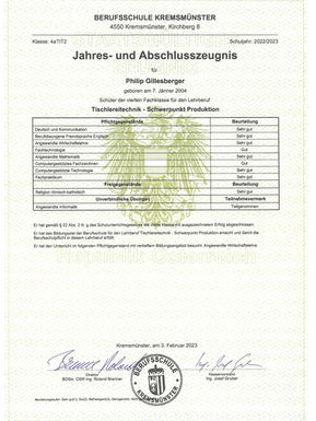 Du hast deine Lehrzeit fast bendet-die 4. Klasse der Berufsschule hast du wie alle anderen Berufsschulklassen mit AUSZEICHNUNG abgeschlossen.