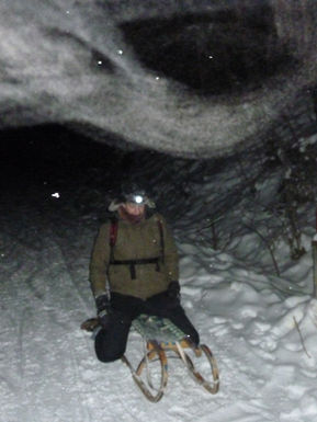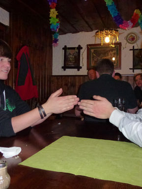Dort verbrachten wir ein paar gemütliche Stunden zusammen. Gut gelaunt und gestärkt machten wir uns auf die Abfahrt mit dem Schlitten ins Tal.