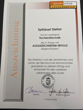 4 Lehrjahre zum Tischlereitechniker in unserer Firma - gehen bald zu Ende . Wie die Zeit vergeht .